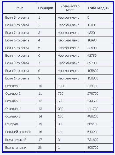 Ранг зависит не только от количества АП, но и от его доступности. Количество игроков, которые могут получить ранг выше воинского, ограничено, и ранг получают те игроки, у которых больше АП.